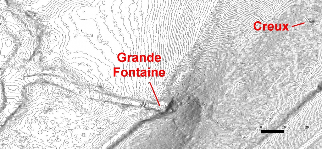 A noter que quelques mètres au-dessus, un large porche obstrué et encombré de blocs ne parait pas impossible à désobstruer. Ce serait à envisager en week-end avec des travaux dans la grotte des blaireaux distante d'à peine 50 m.